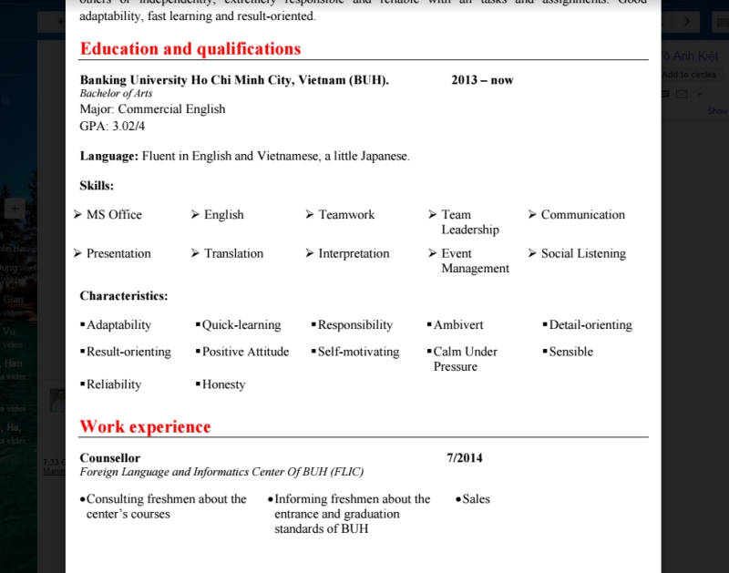 Ví dụ đây là CV không ấn tượng: