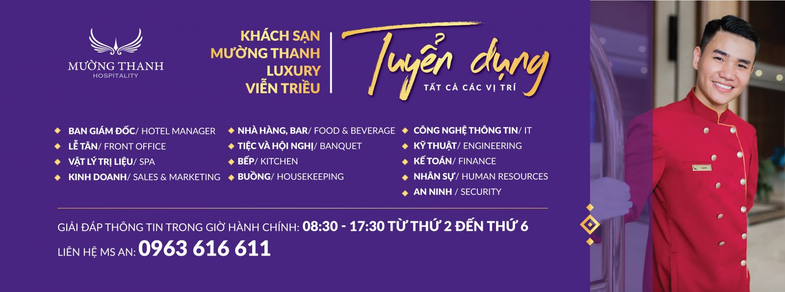 Để biết thêm chi tiết truy cập: tuyendung.muongthanh.com hoặc Fanpage Facebook: Mường Thanh Jobs